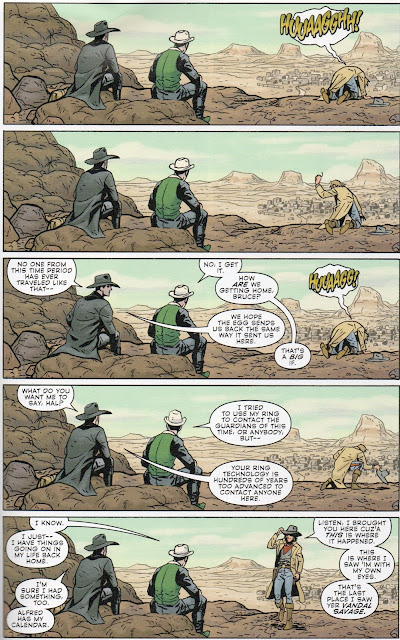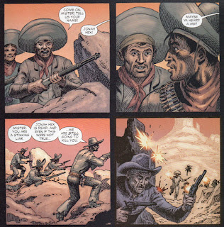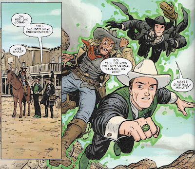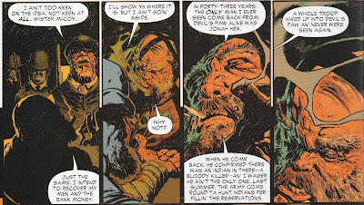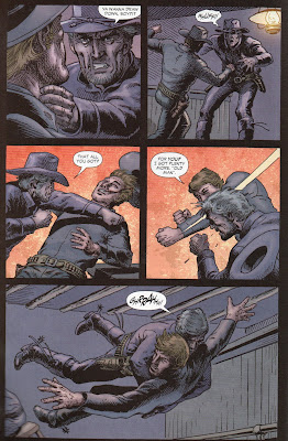 Then we have interior art by Vincente Alcazar. Last time we saw him was back in 1979, 31 years ago. and he is currently 81. Good job all around. My only gripe is the depiction of Billy. It is dang hard to draw kids convincingly and the five year old Billy looks a lot like ten year old Billy. Oddly enough, the last time Jonah ran into a kid with dynamite was back in Jonah Hex #13 and THAT was a kid named Billy!!!