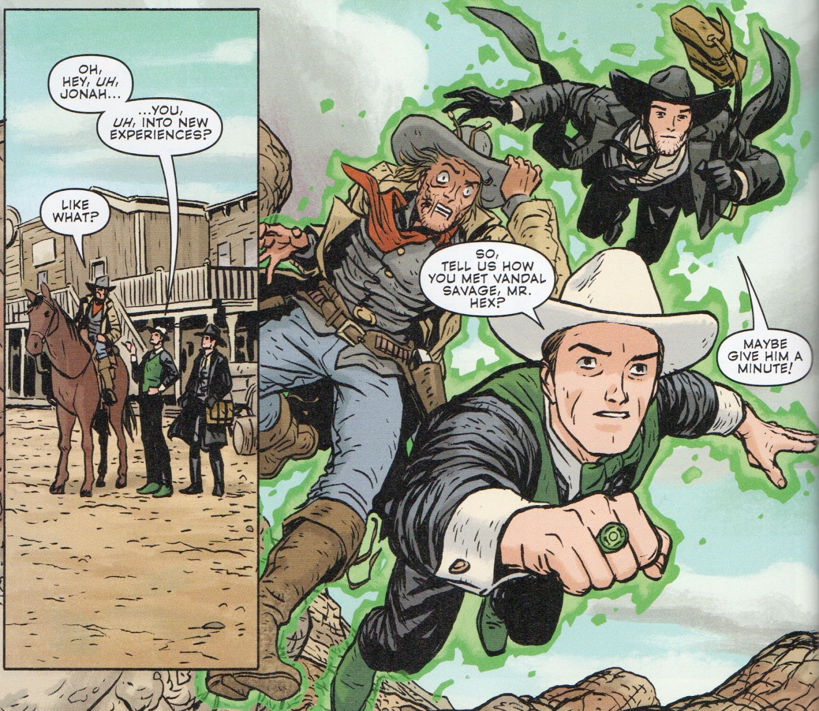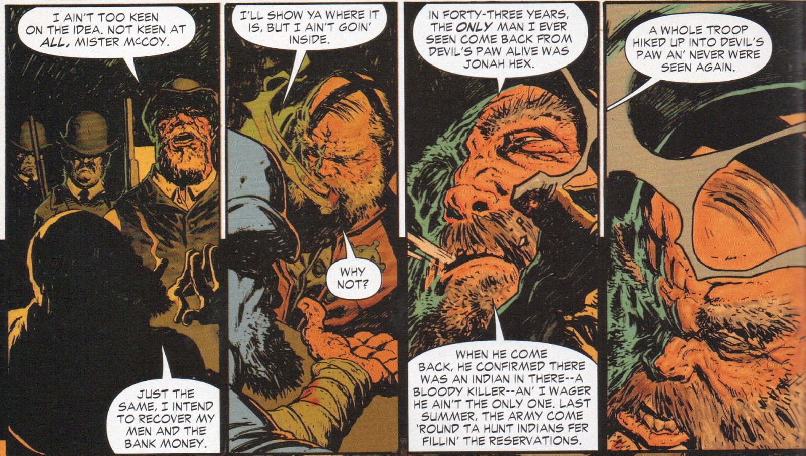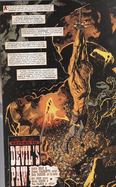 I also enjoyed the extended time frame of this story, with the origin of Billy, Hex's involvement (or lack thereof) in the creation of Billy, Fiona tracking Hex down and reading him the riot act. What I found especially intriguing was the manner that Jonah tied those seven men up to the trees. I suspect that he had three of them, at gunpoint, tie up the first four and then someone got the last three in that position. The "Ah, hell..." at the end was a very nice touch.