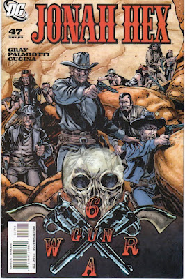Soon Hex and his group arrive at the small town and head into the saloon with Blue Eagle waiting outside. As the group bellies up to the bar who should appear than none other than Chako. And what should hit Chako's jaw but none other than Jonah's fist. Bat Lash is lured away by a saloon girl, Hex and Tallulah pour their drinks and walk off and Lazuras Lane finds a comfortable table.